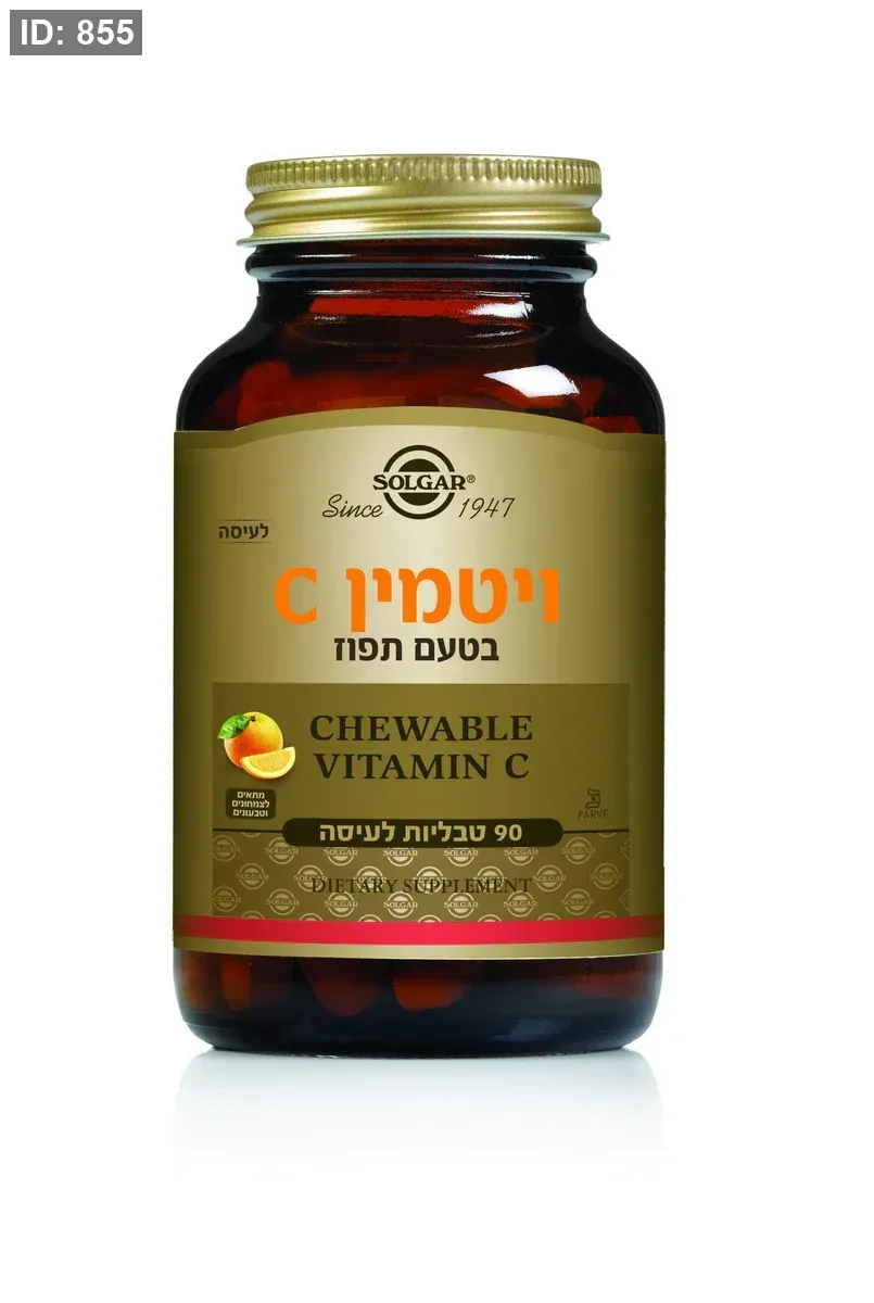 عبوة من أقراص سولجار فيتامين سي القابلة للمضغ بنكهة البرتقال.