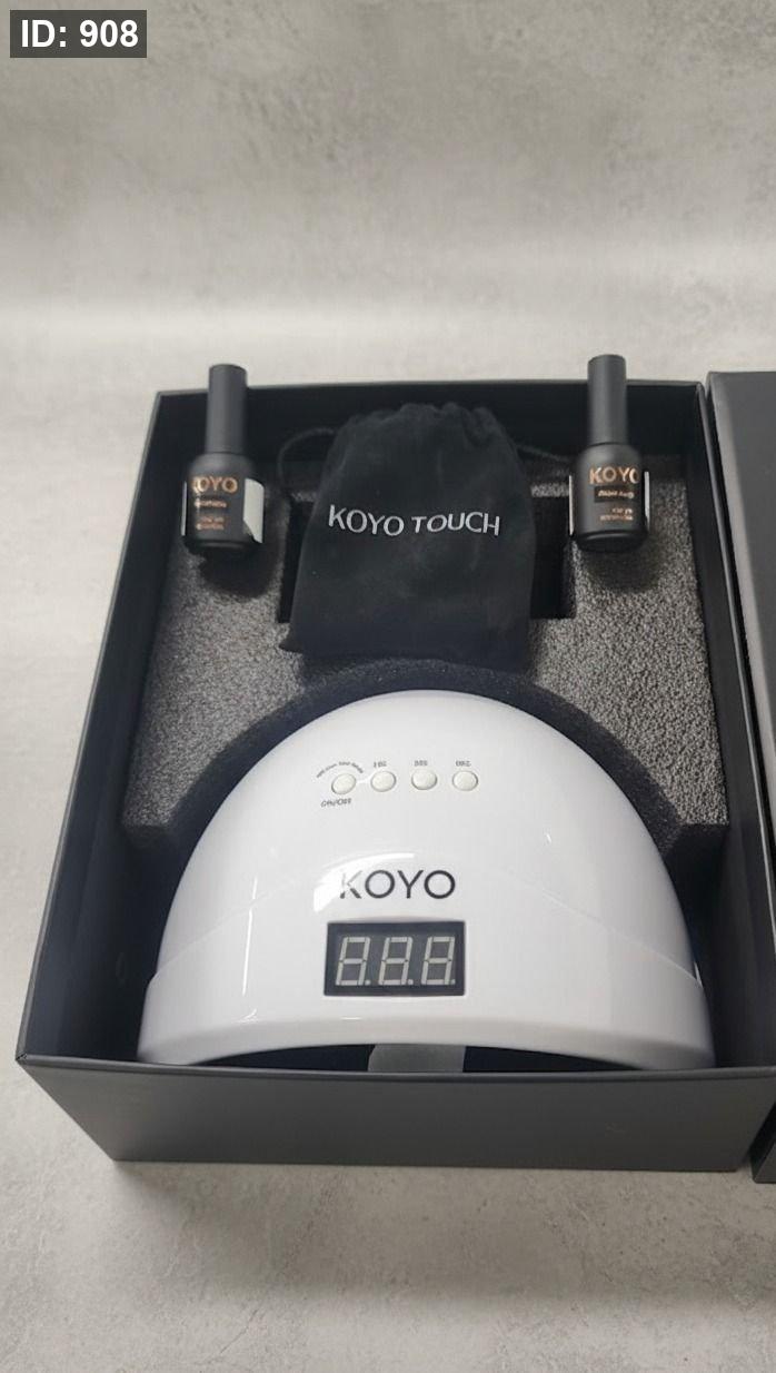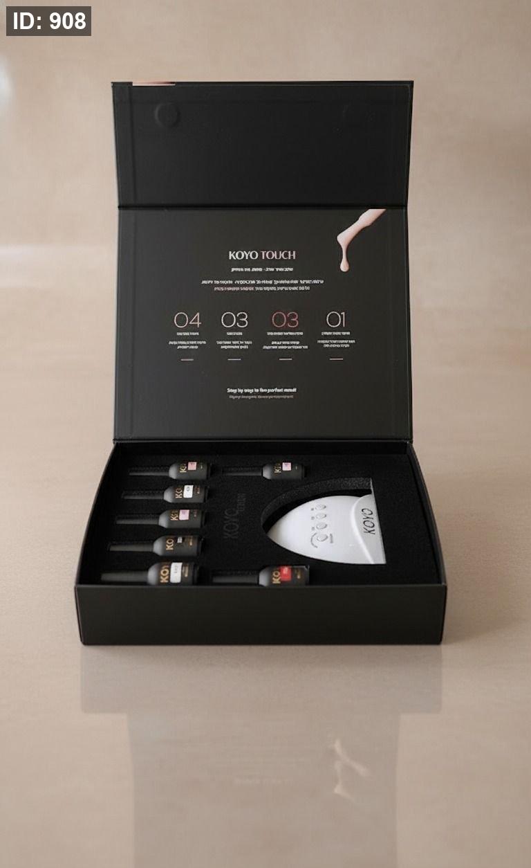 الذي يتضمن مصباح تجفيف KOYO، و7 ألوان من طلاء الجل، وطبقة أساسية، وطبقة علوية بدون معادلة، ومجموعة مانيكير منزلية من 5 قطع، و5 فيديوهات تعليمية عن طلاء الجل.